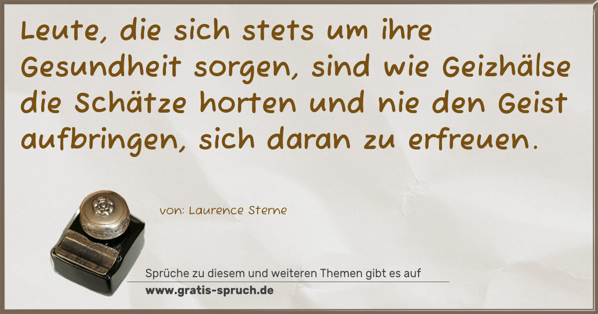 Leute, die sich stets um ihre Gesundheit sorgen, sind wie Geizhälse die Schätze horten und nie den Geist aufbringen, sich daran zu erfreuen.