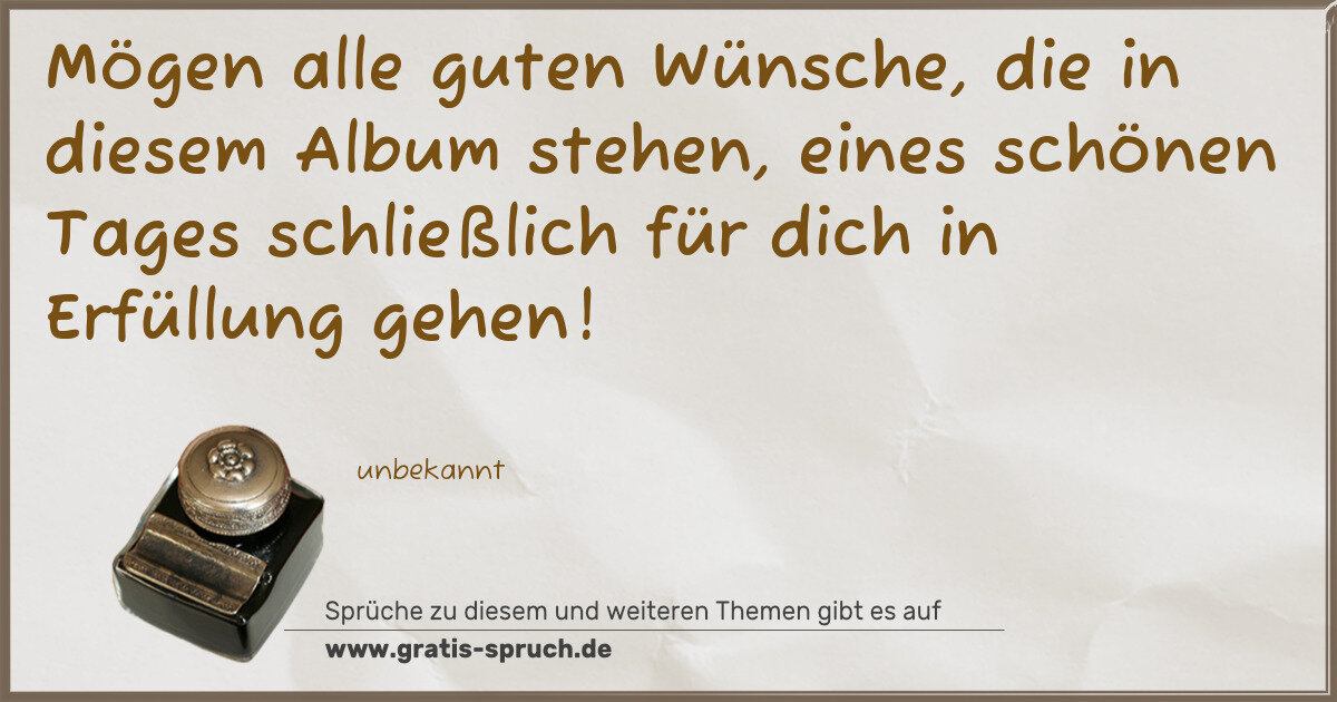 Mögen alle guten Wünsche, die in diesem Album stehen, eines schönen Tages schließlich für dich in Erfüllung gehen!
