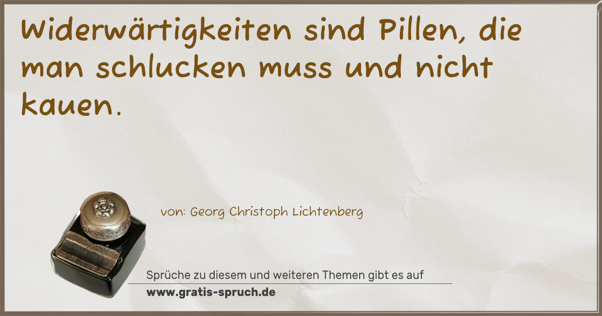 Widerwärtigkeiten sind Pillen, die man schlucken muss und nicht kauen.