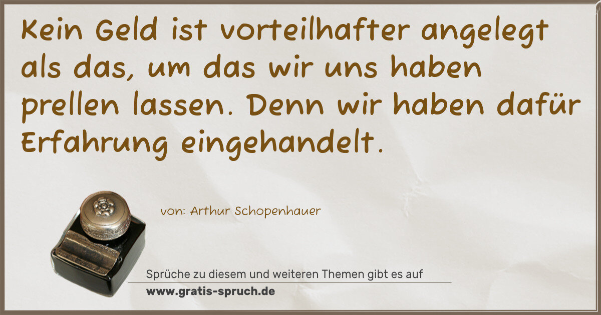 Kein Geld ist vorteilhafter angelegt als das, um das wir uns haben prellen lassen. Denn wir haben dafür Erfahrung eingehandelt.