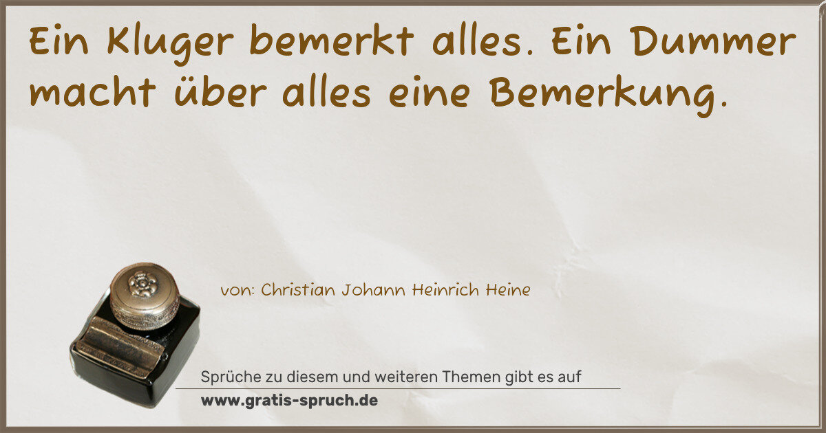 Ein Kluger bemerkt alles. Ein Dummer macht über alles eine Bemerkung.