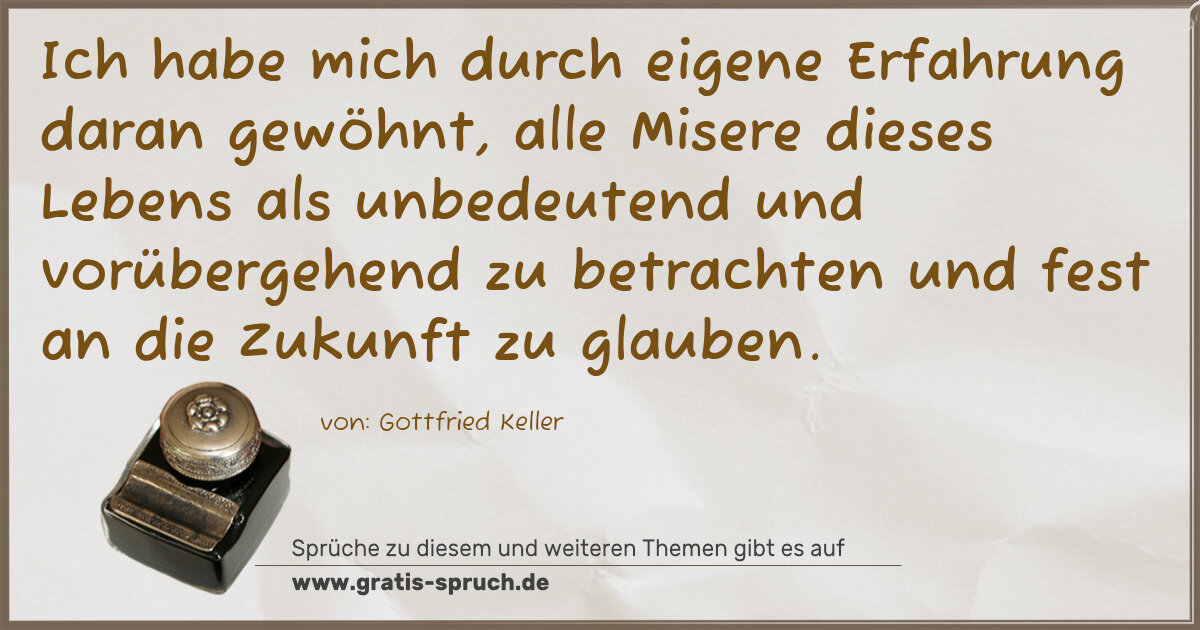 Ich habe mich durch eigene Erfahrung daran gewöhnt, alle Misere dieses Lebens als unbedeutend und vorübergehend zu betrachten und fest an die Zukunft zu glauben.