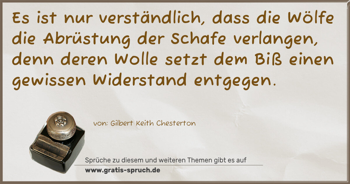 Es ist nur verständlich, dass die Wölfe die Abrüstung der Schafe verlangen, denn deren Wolle setzt dem Biß einen gewissen Widerstand entgegen.