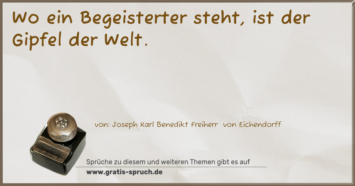 Wo ein Begeisterter steht, ist der Gipfel der Welt.
