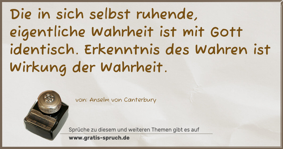 Die in sich selbst ruhende, eigentliche Wahrheit ist mit Gott identisch. Erkenntnis des Wahren ist Wirkung der Wahrheit.