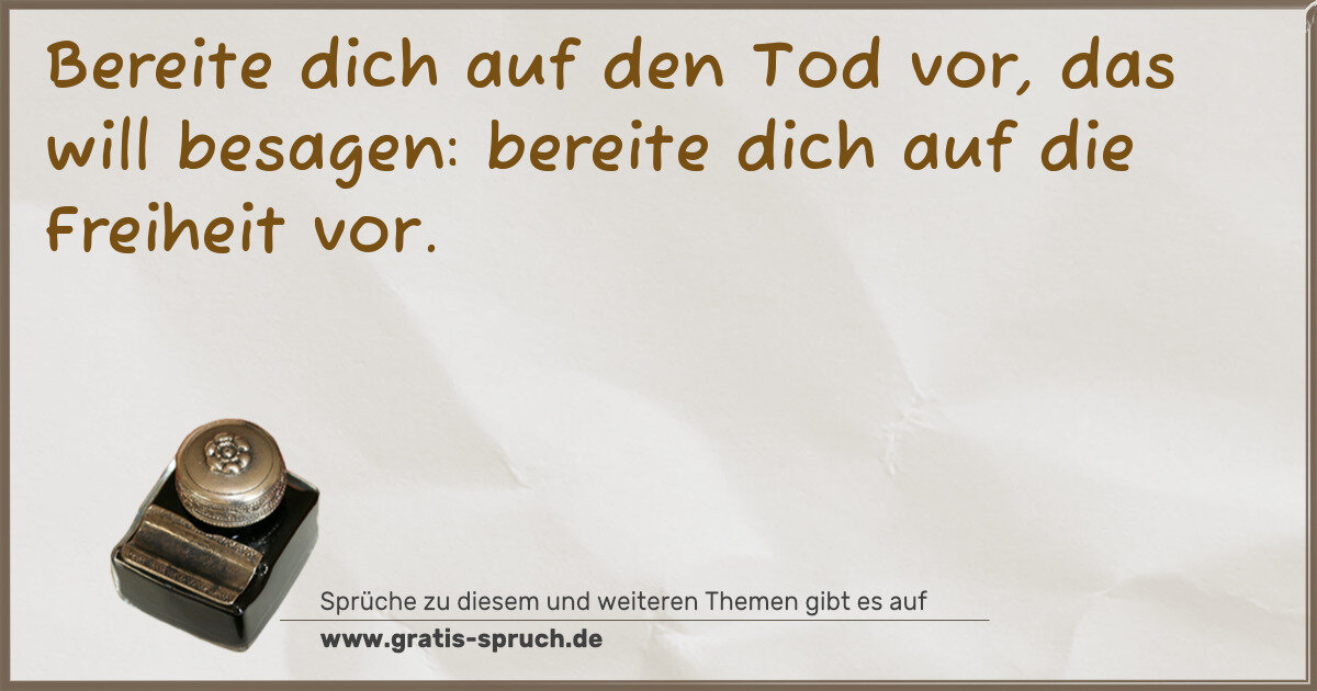 Bereite dich auf den Tod vor, das will besagen: bereite dich auf die Freiheit vor.