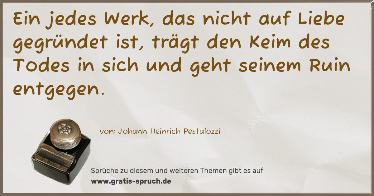 Ein jedes Werk, das nicht auf Liebe gegründet ist, trägt den Keim des Todes in sich und geht seinem Ruin entgegen.