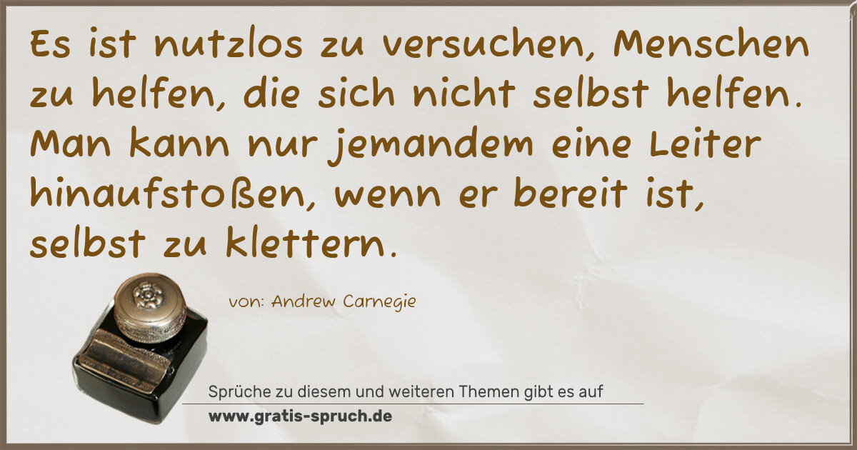 Es ist nutzlos zu versuchen, Menschen zu helfen, die sich nicht selbst helfen. Man kann nur jemandem eine Leiter hinaufstoßen, wenn er bereit ist, selbst zu klettern.
