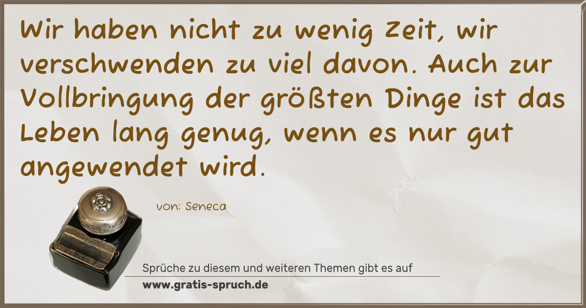 Wir haben nicht zu wenig Zeit, wir verschwenden zu viel davon. Auch zur Vollbringung der größten Dinge ist das Leben lang genug, wenn es nur gut angewendet wird.