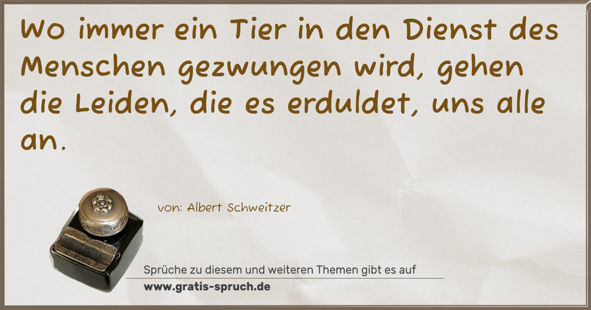 Wo immer ein Tier in den Dienst des Menschen gezwungen wird, gehen die Leiden, die es erduldet, uns alle an.