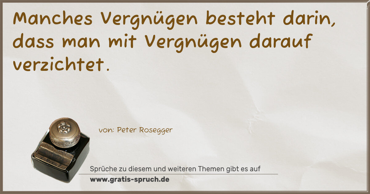 Manches Vergnügen besteht darin, dass man mit Vergnügen darauf verzichtet.